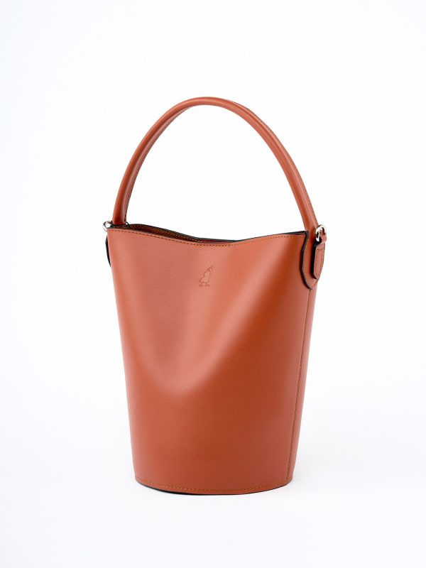 Сумка Chelak – Маленькая сумка в форме ведёрка с ремешком для ношения через плечо. Подклад зависит от цвета: в зелёной сумке из наппа используется алькантара; в чёрной из гладкой кожи и во флюторно-бежевой версии — без подкладки.