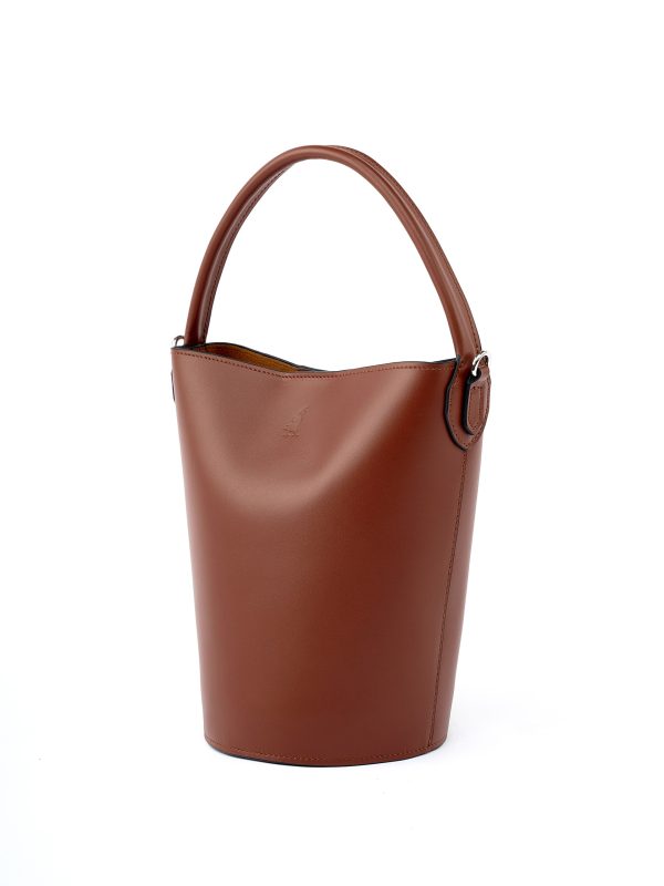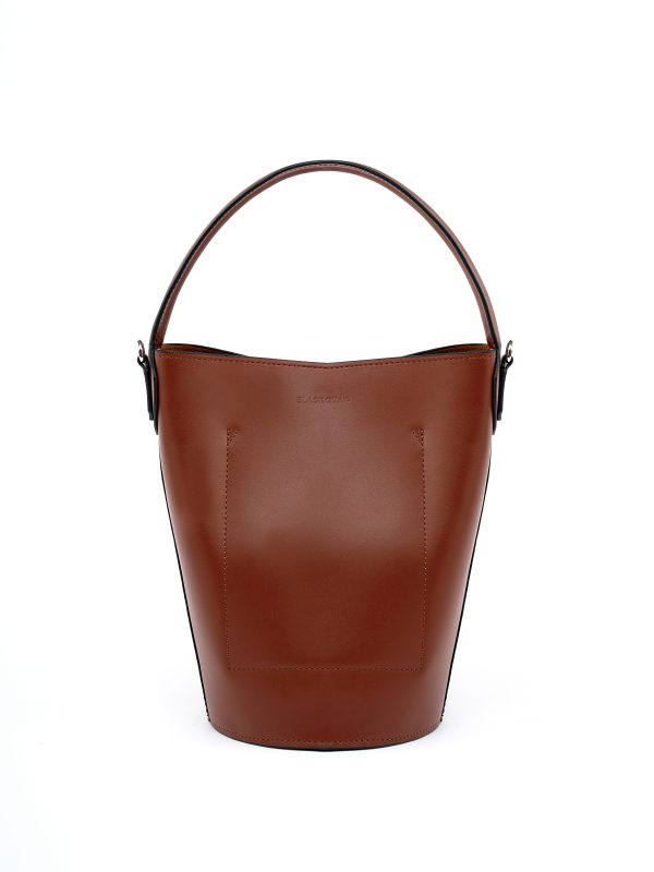 Сумка Chelak – Маленькая сумка в форме ведёрка с ремешком для ношения через плечо. Подклад зависит от цвета: в зелёной сумке из наппа используется алькантара; в чёрной из гладкой кожи и во флюторно-бежевой версии — без подкладки.